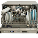 загрузка на 6 комплектов посуды • электронное управление • 6 программ • 55.3×51.8×44.4 см • нержавеющая сталь цвет • сушка: конденсационная • индикация на полу: нет