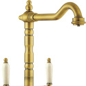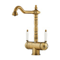 Комплектация - Смеситель, комплект подводки, полный набор креплений для подключения, инструкция, гарантийный талон, салфетка из микрофибры, Покрытие - Золото, Коллекция - Antique times, Материал корпуса - Латунь, Присоединительный размер - 1\2", Тип подводки - Гибкая, Назначение - Для мойки, Тип - Однозахватный, Количество монтажных отверстий - 1, Аэратор - Есть, Высота - 30.6, Форма излива - Традиционная, Высота излива - 236, Поворотный излив - Да, Длина излива - 215, Цвет - Золотистый, Ширина - 15