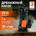 Тип: погружной фекальный • Пропускная способность: 4.5 м /ч • Максимальный напор: 10 м • Мощность: потребляемая - 600 Вт • Напряжение сети: 220/230 В • Качество воды: грязная • Установка: вертикальная • Глубина погружения: 7 м • Контроль уровня воды: есть, поплавковый • Вес: 15 кг