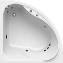 Материал: акрил • Расположение: отдельно стоящая, угловая конструкция • Форма: четверть круга • Объем: 260 л • Количество мест: одноместная • Гидромассаж: есть, 9 форсунок • Подсветка: есть • Размеры (ДxШxВ): 125x125x47 см