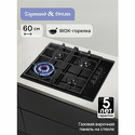 Варочная поверхность, газовая, панель из закаленного стекла, 4 газовые конфорки, трехконтурная конфорка, переключатели поворотные, электроподжиг